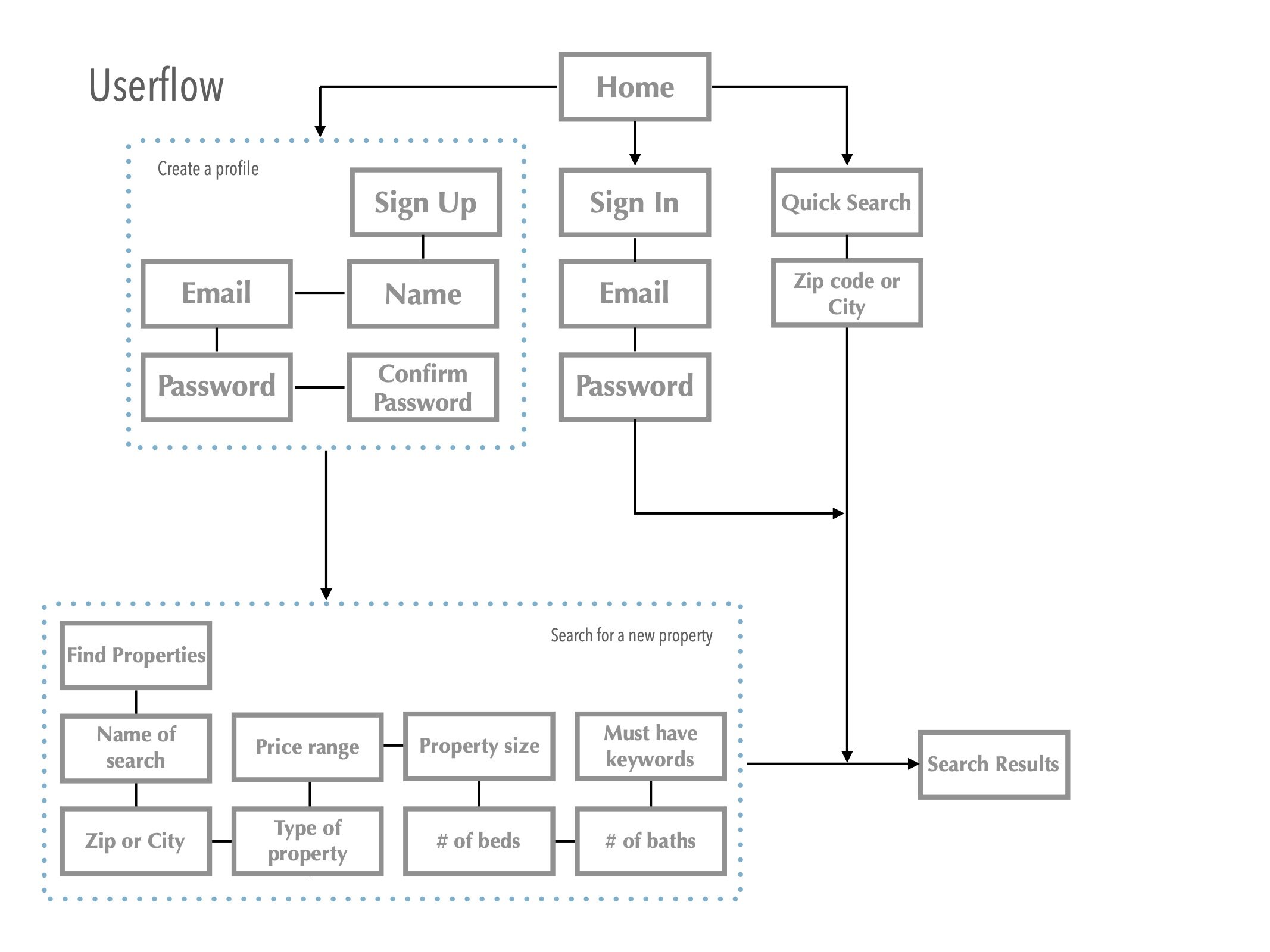 With so many big name real estate apps on the market, I wanted to find a way to break into the field with an app that had a different aesthetic. I did a competitive analysis of a few websites, and compiled a list of the features I would absolutely need to have available to my users. I also noticed that most apps have cluttered designs, with almost too many options, and I wanted this app to feel more “bare bones” in comparison.